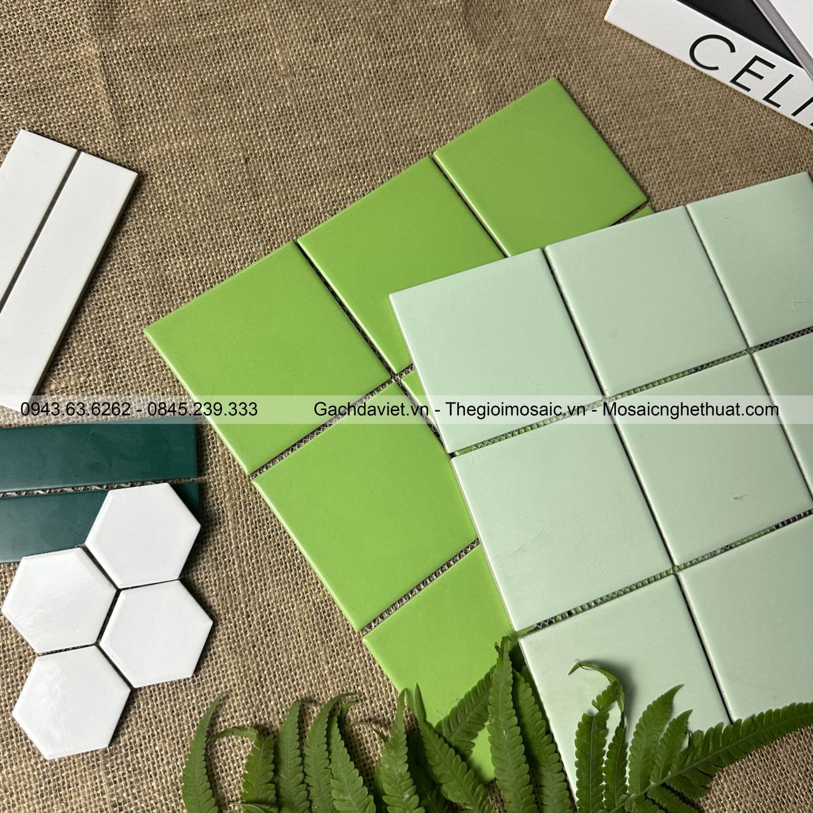 Gạch mosaic 10x10 màu xanh lá nhạt mờ MS1010-903