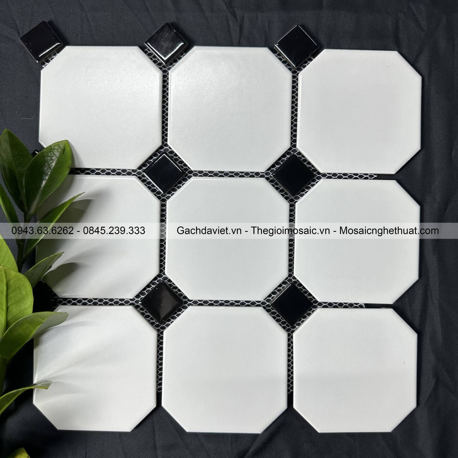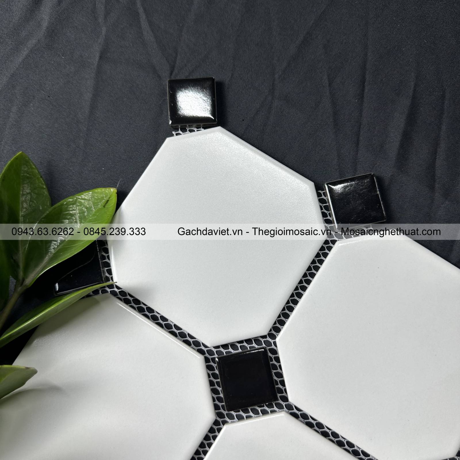 Gạch mosaic bát giác to mix viên đen MSBG-026