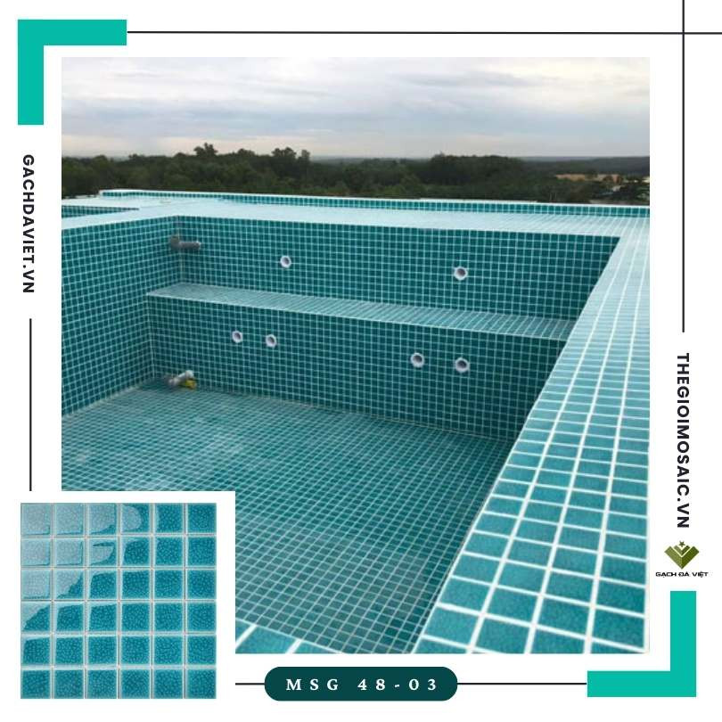 Gạch mosaic gốm men rạn màu xanh ngọc KT 48x48 MSG 48-03