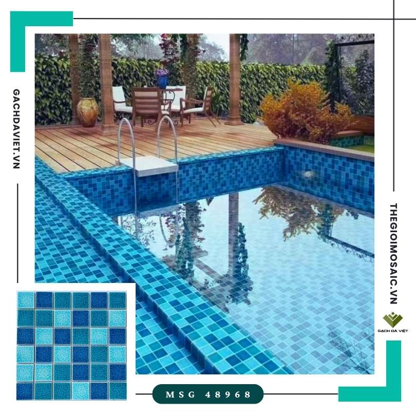 Gạch mosaic gốm men rạn mix xanh KT 48x48 MSG-48968