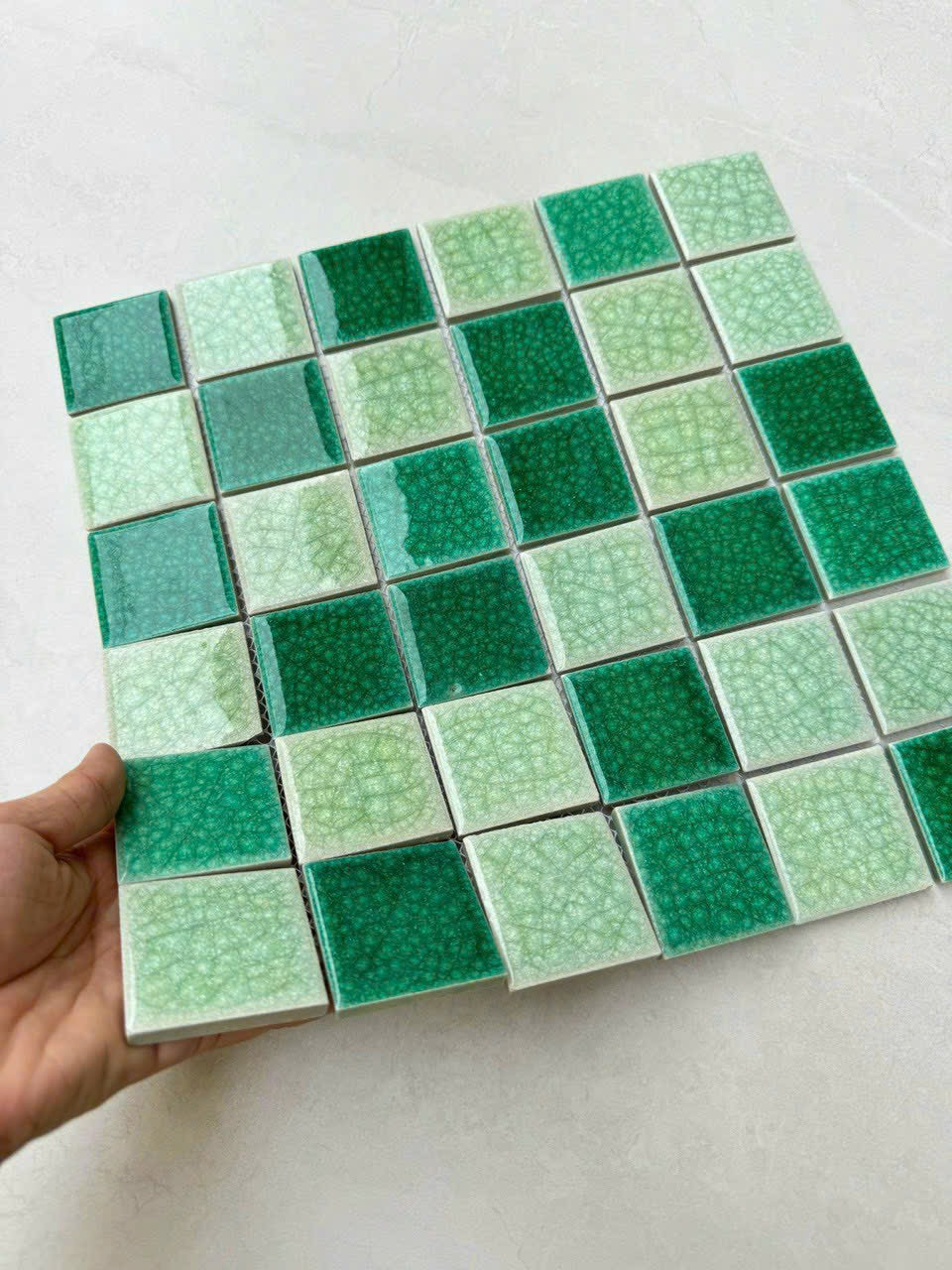 Gạch mosaic gốm men rạn xanh lá mix KT 48x48 MSG-48936