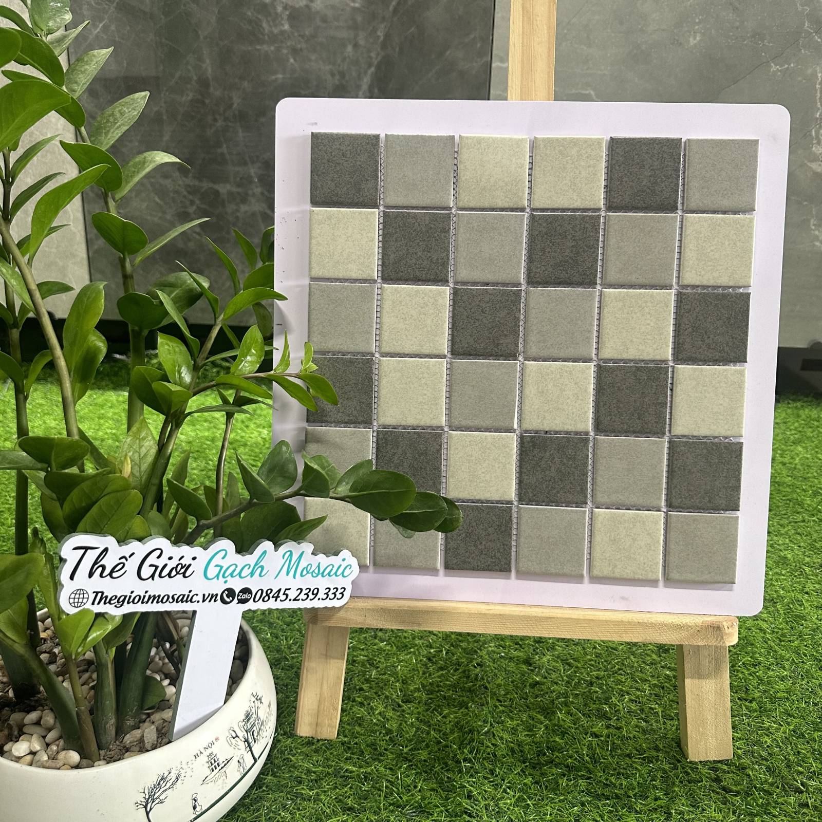 Gạch mosaic gốm sứ mix màu xám KT 48x48 MSG-057