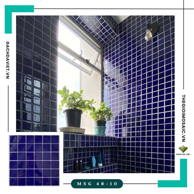 Gạch mosaic gốm trơn màu xanh dương đậm KT 48x48 MSG 48-10