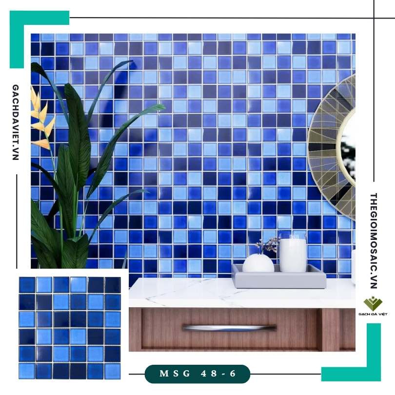 Gạch mosaic gốm trơn màu xanh mix màu KT 48x48 MSG 48-06