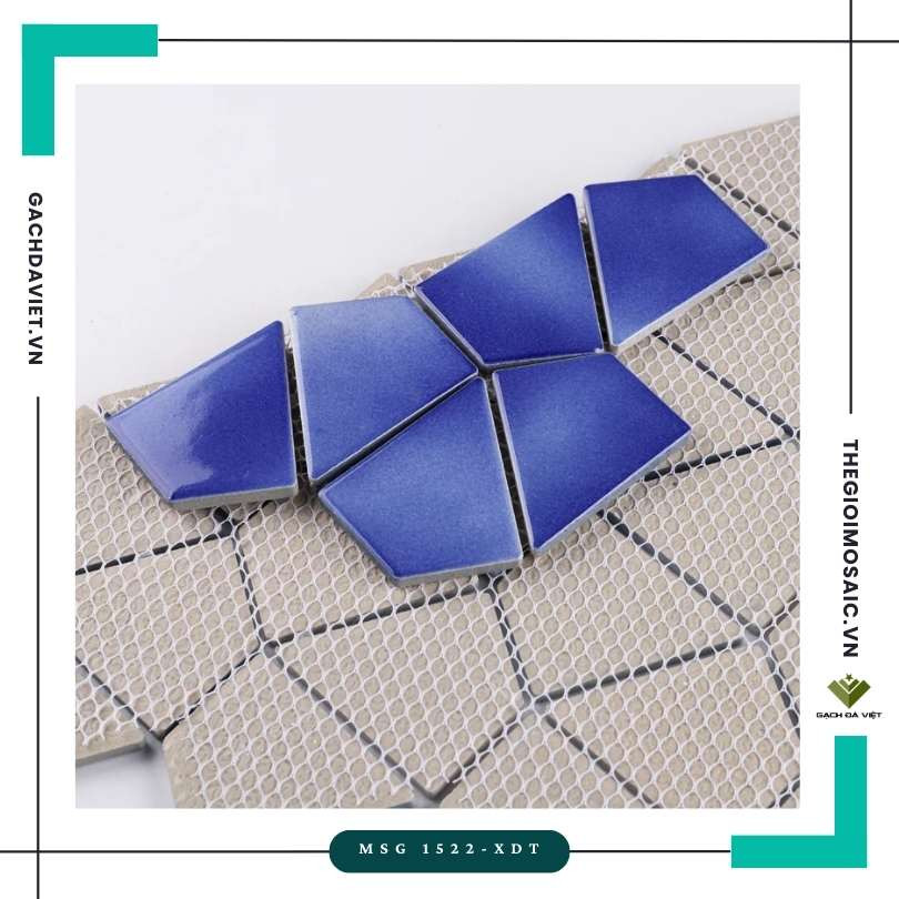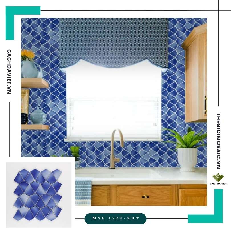 Gạch mosaic kim cương màu xanh dương trắng loang MSG 1522-XDT - Hàng Oder