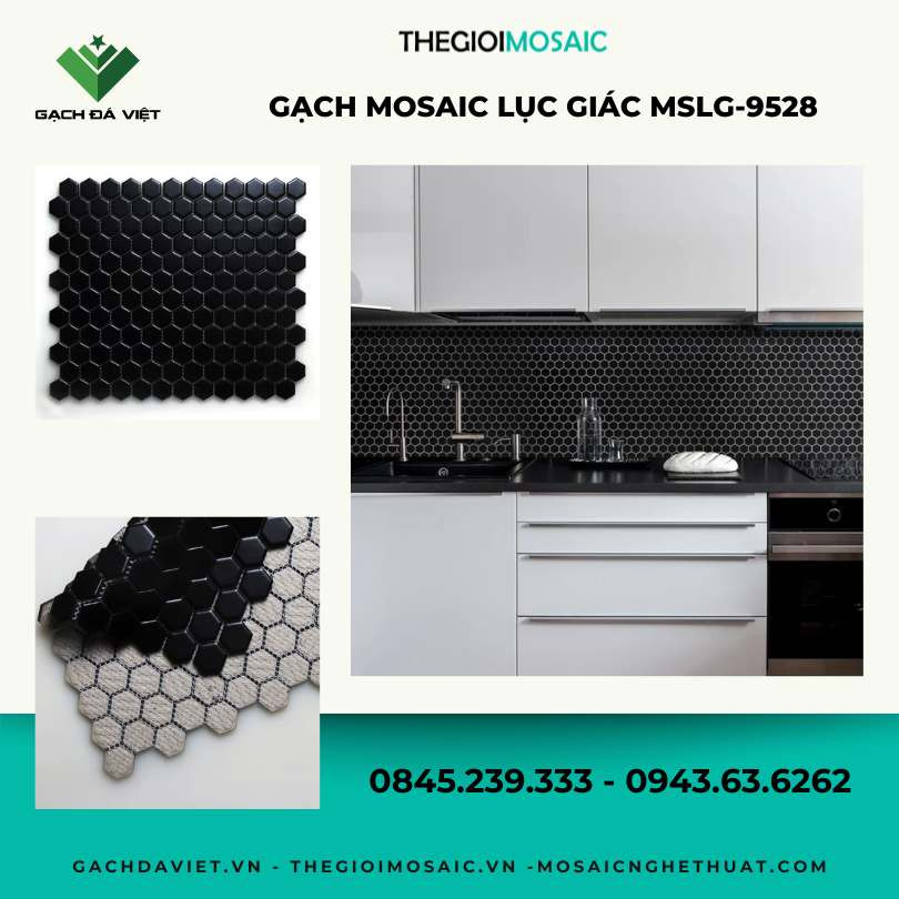 Gạch mosaic lục giác đen mờ chip nhỏ MSLG-9528