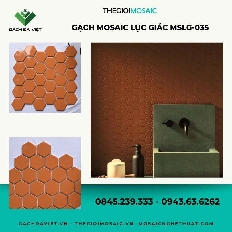 Gạch mosaic lục giác màu cam men bóng MSLG-035