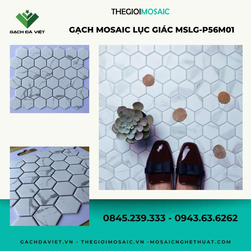Gạch mosaic lục giác màu trắng vân mây MSLG-P56M01