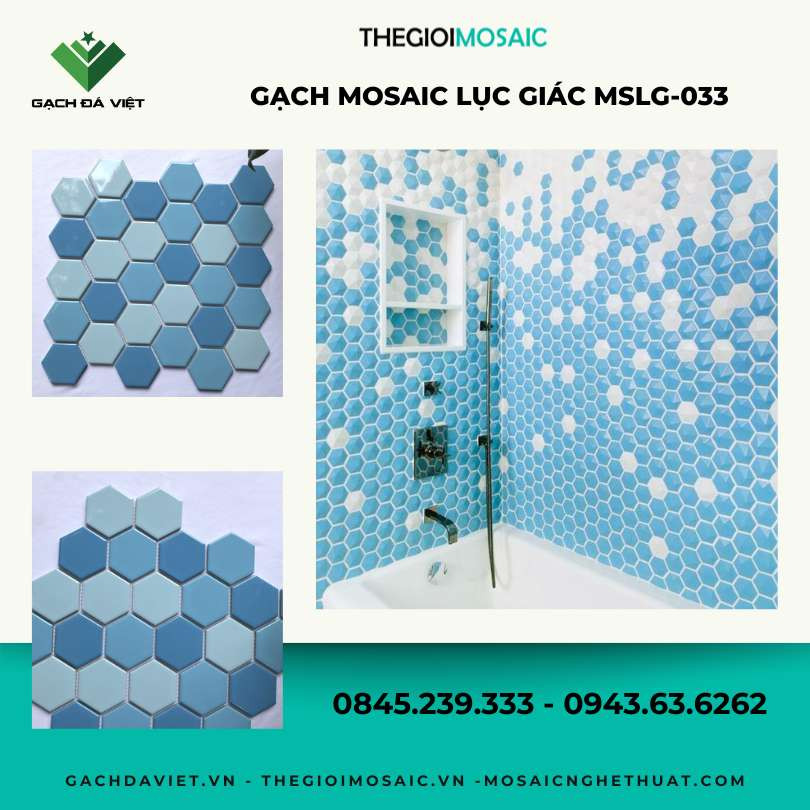 Gạch mosaic lục giác màu xanh mix men bóng MSLG-033