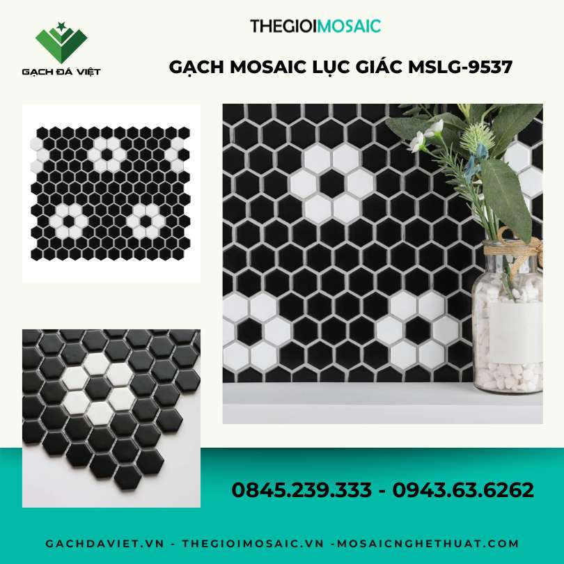 Gạch mosaic lục giác nhỏ màu đen hoa trắng MSLG-9537