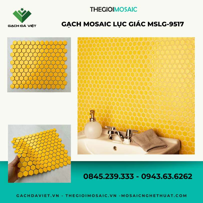 Gạch mosaic lục giác nhỏ màu vàng MSLG-9517