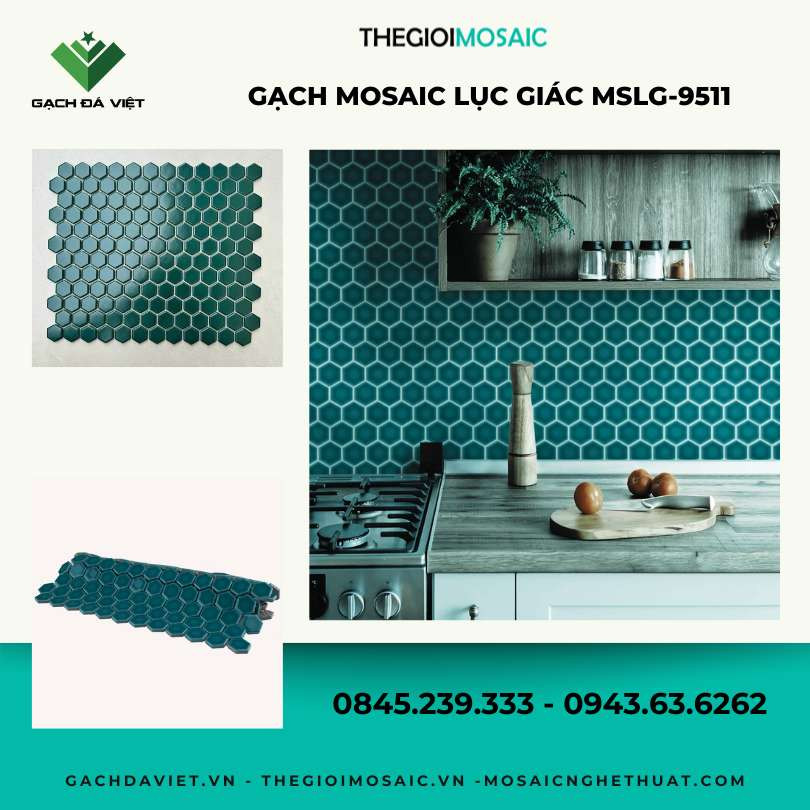 Gạch mosaic lục giác nhỏ màu xanh MSLG-9511