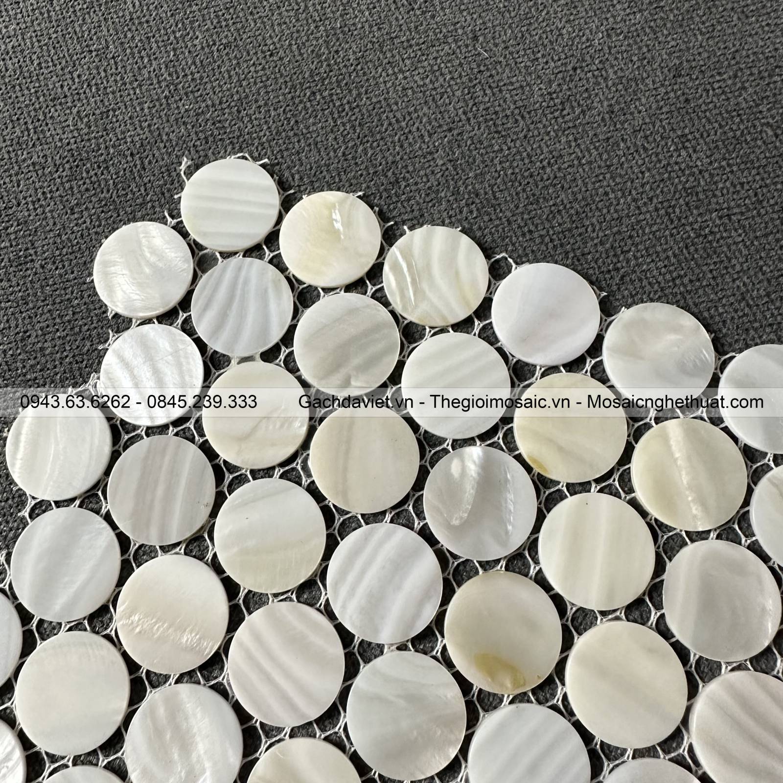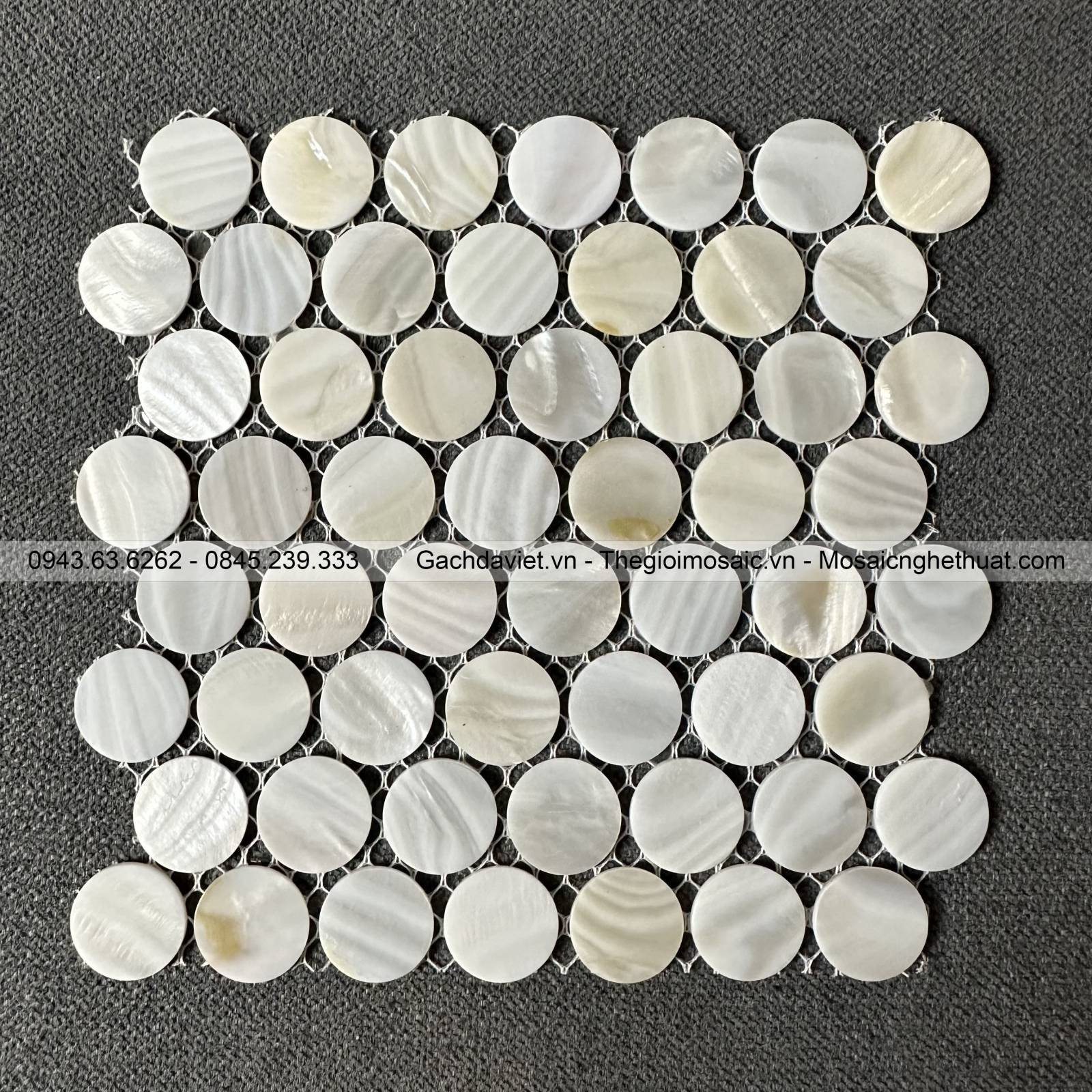 Gạch mosaic ốc xà cừ chip tròn màu trắng mã MSXC-15