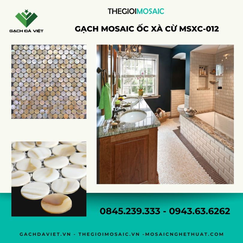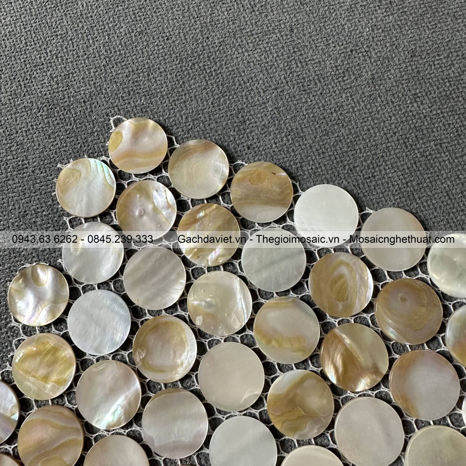 Gạch mosaic ốc xà cừ chip tròn màu vàng nâu mã MSXC-012