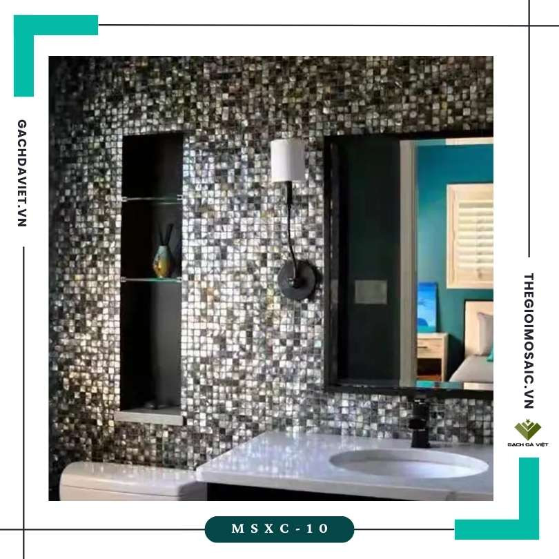 Gạch mosaic ốc xà cừ chip vuông màu đen mã MSXC-10