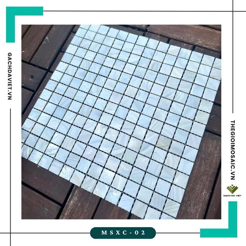 Gạch mosaic ốc xà cừ chip vuông màu trắng mã MSXC-02