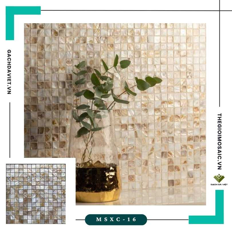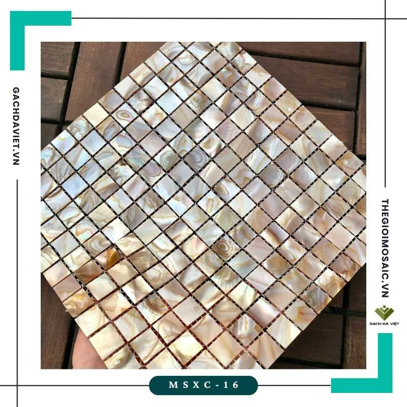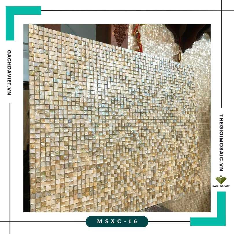Gạch mosaic ốc xà cừ chip vuông màu vàng mã MSXC-16