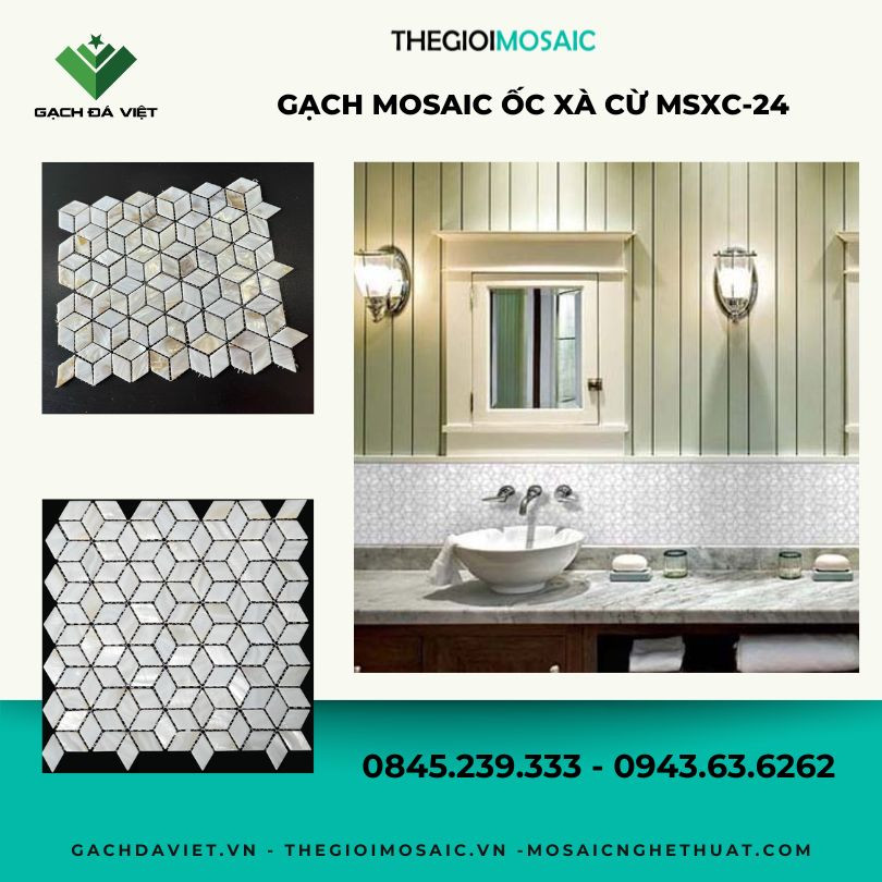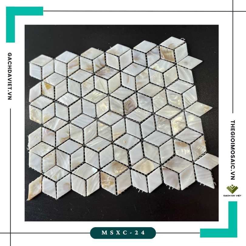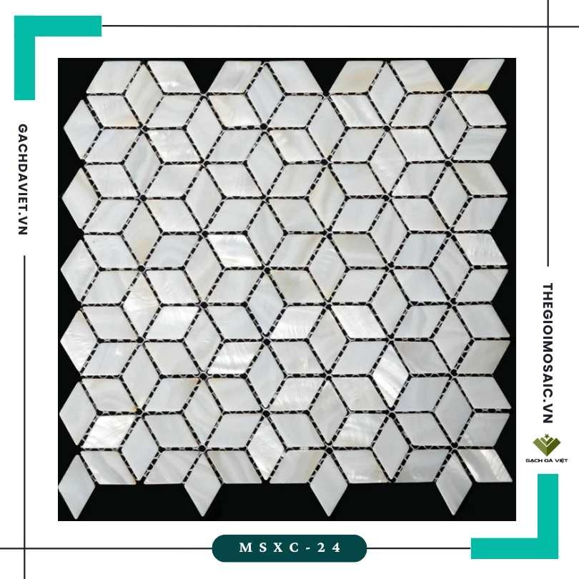 Gạch mosaic ốc xà cừ hình kim cương mã MSXC-24