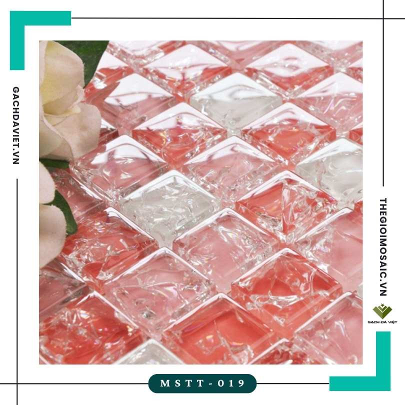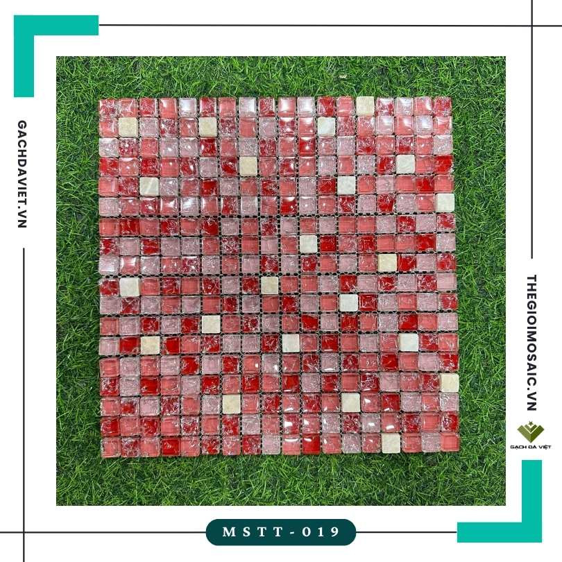 Gạch mosaic thủy tinh màu đỏ rạn KT 15*15*8mm MSTT-019