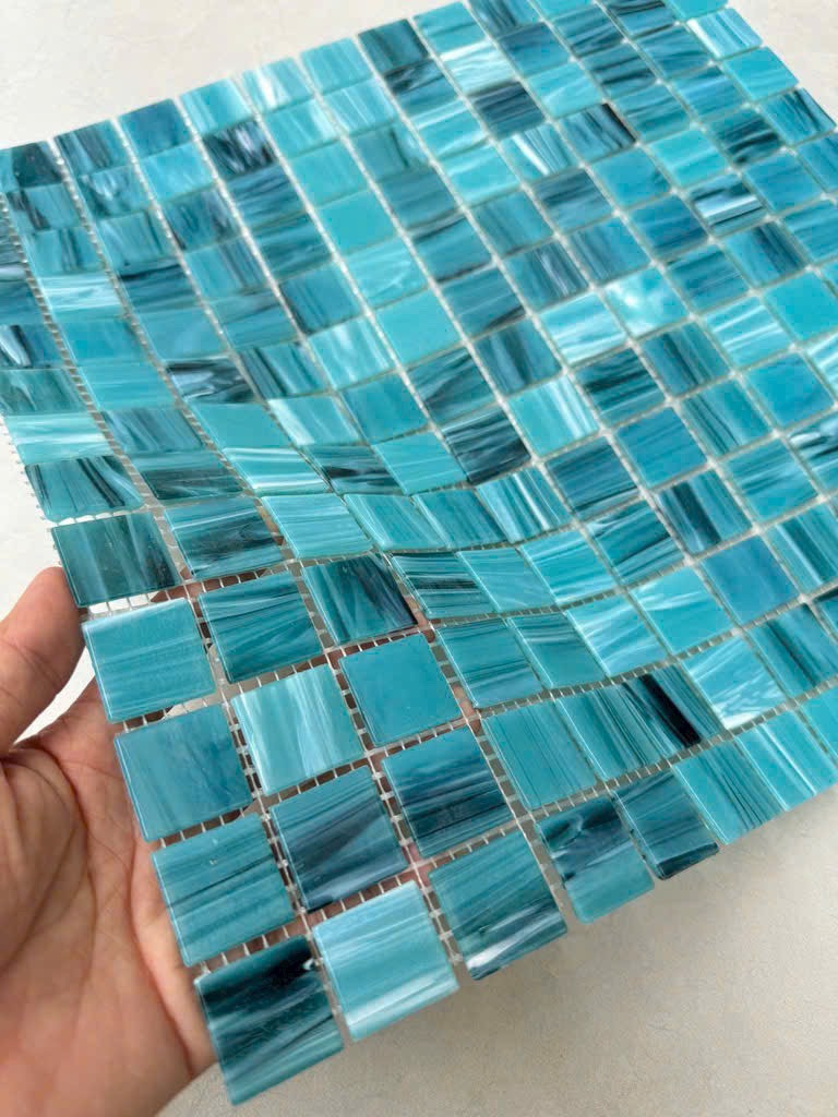 Gạch mosaic thủy tinh vân xà cừ màu xanh dương MSXC-2338
