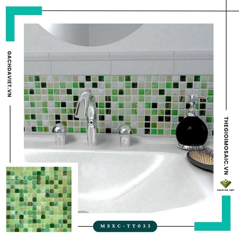 Gạch mosaic thủy tinh vân xà cừ màu xanh lá mix MSXC-TT033
