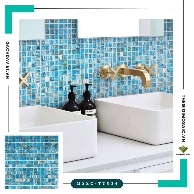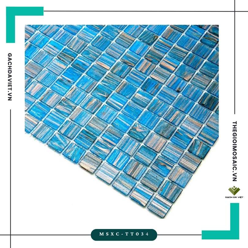Gạch mosaic thủy tinh vân xà cừ màu xanh nhạt MSXC-TT034