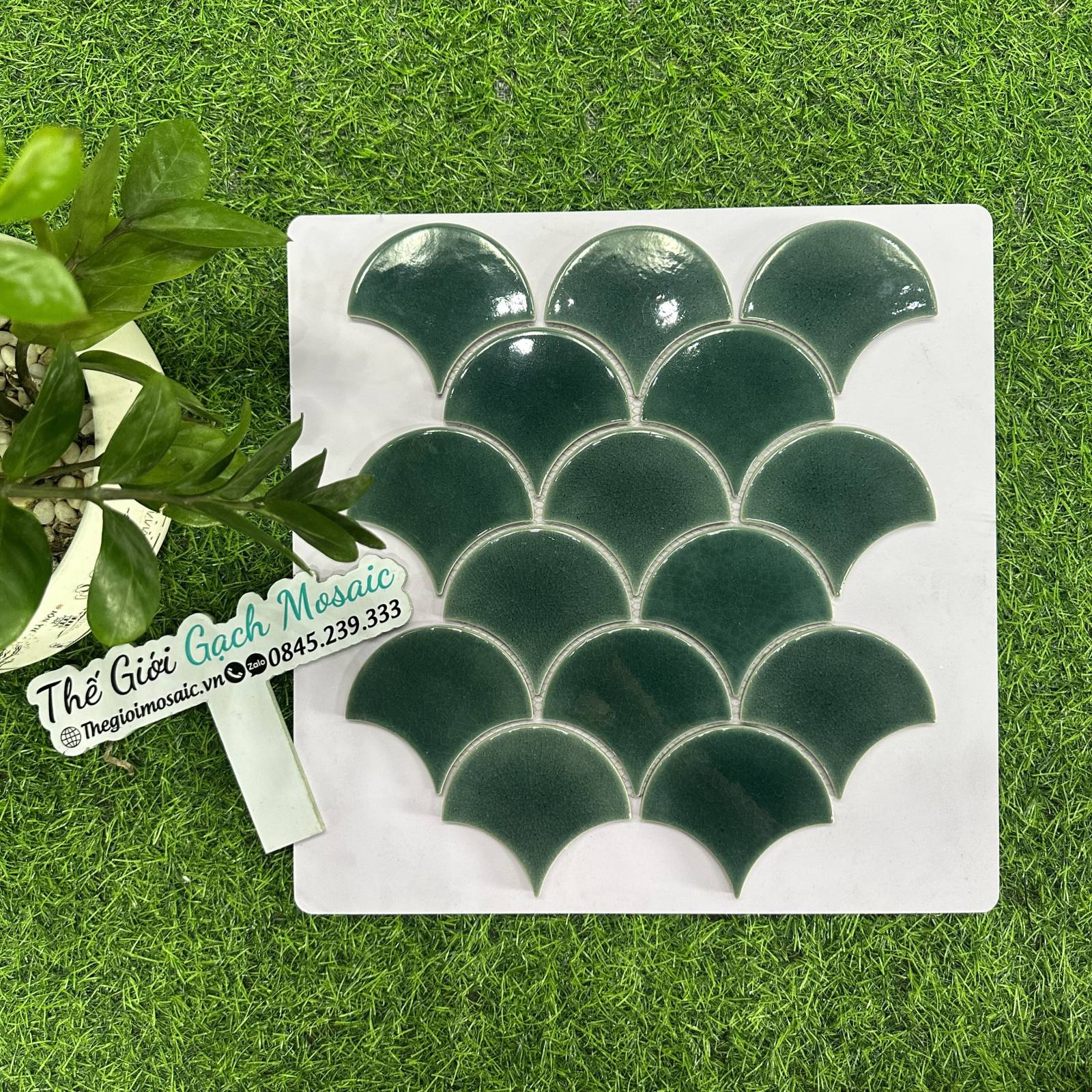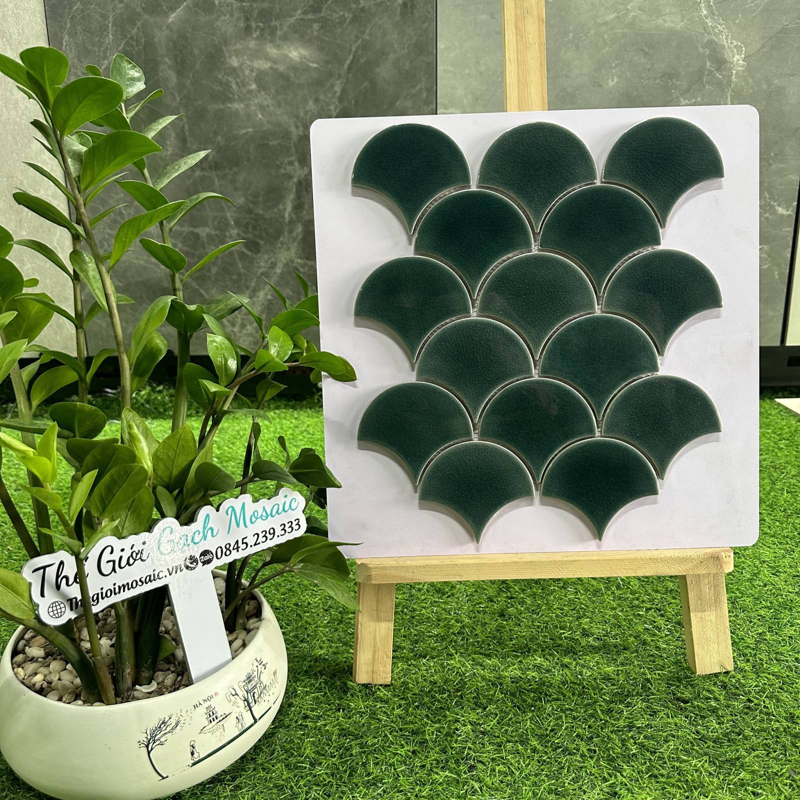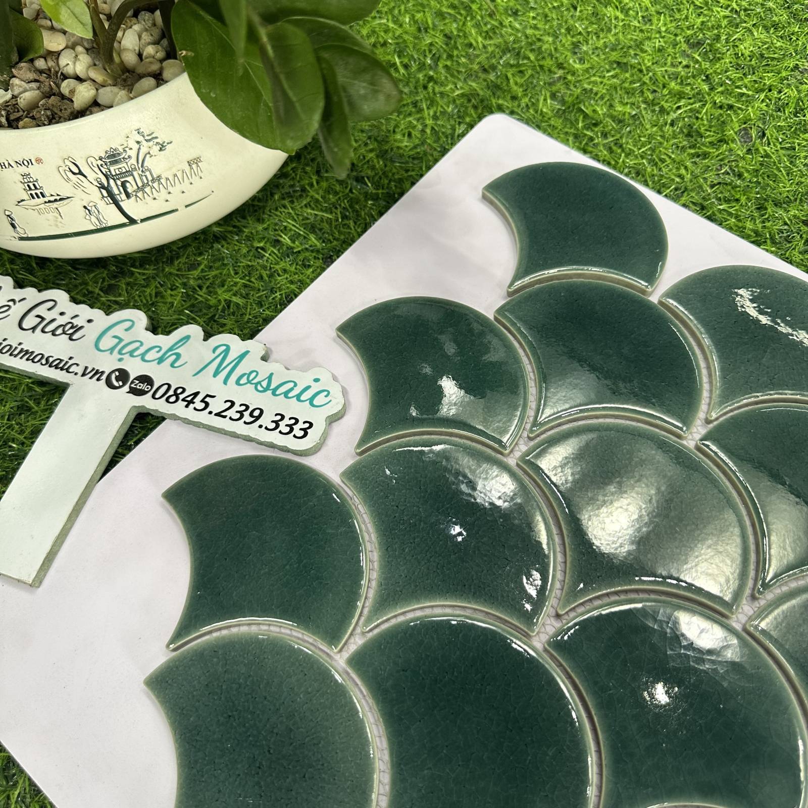 Gạch mosaic vả cá men rạn 1 lớp màu xanh nâu MSVC-F80