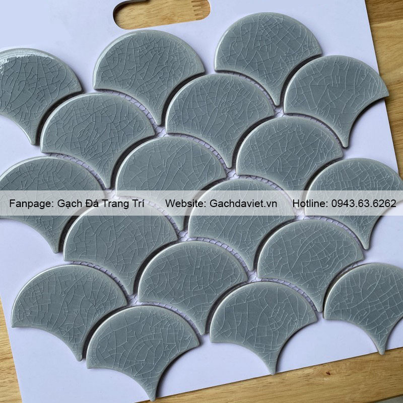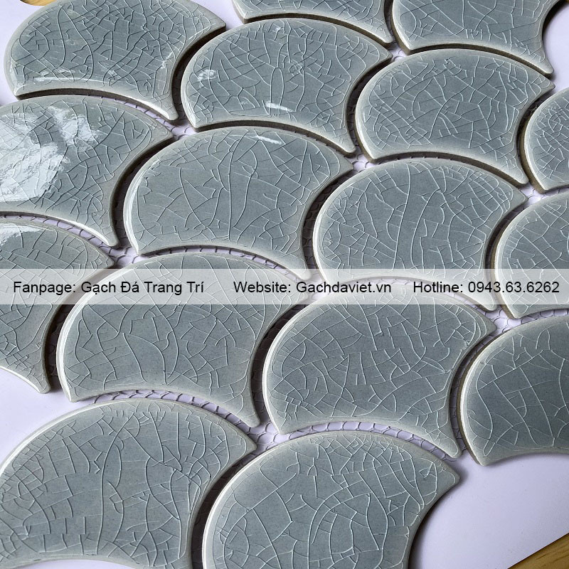 Gạch mosaic vảy cá men rạn 1 lớp màu xám MSVC-F07